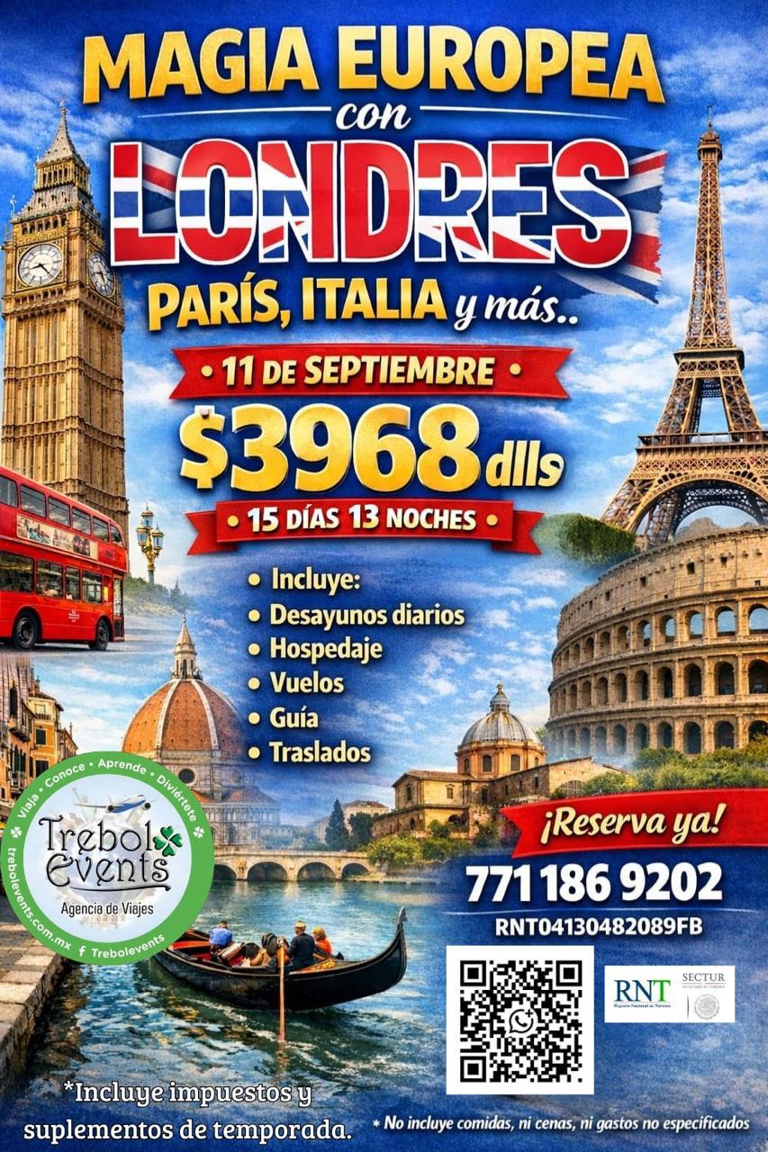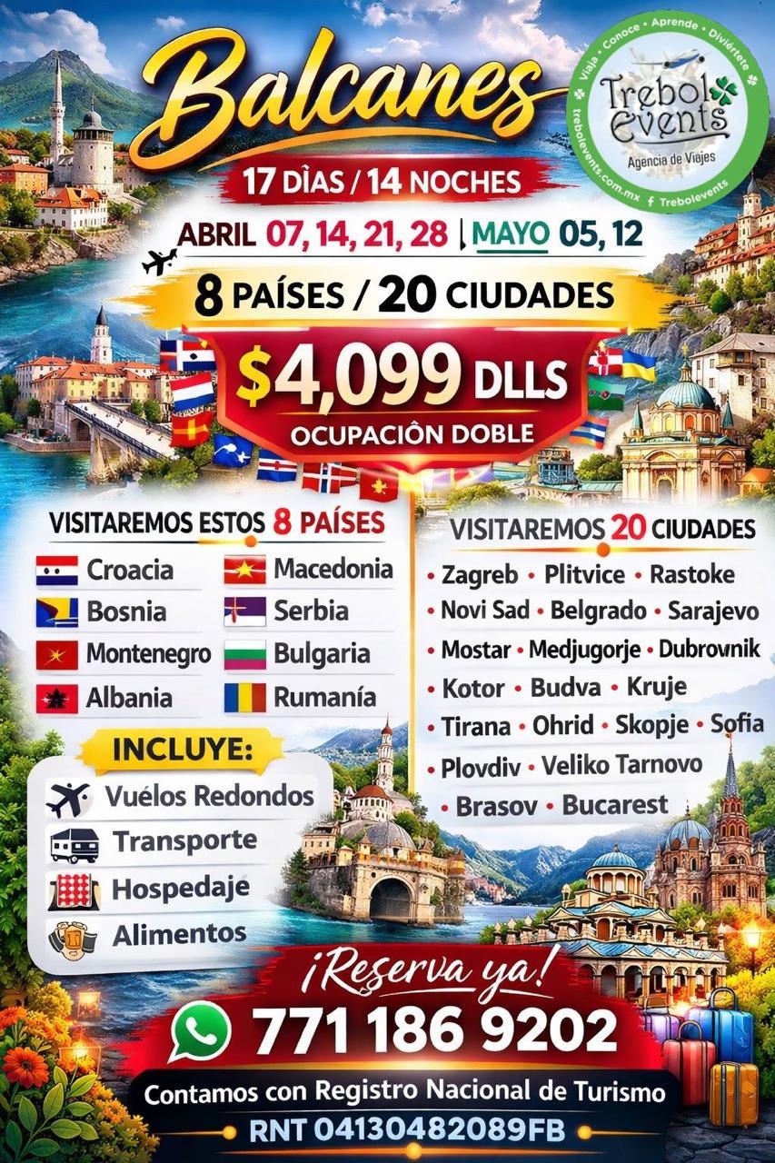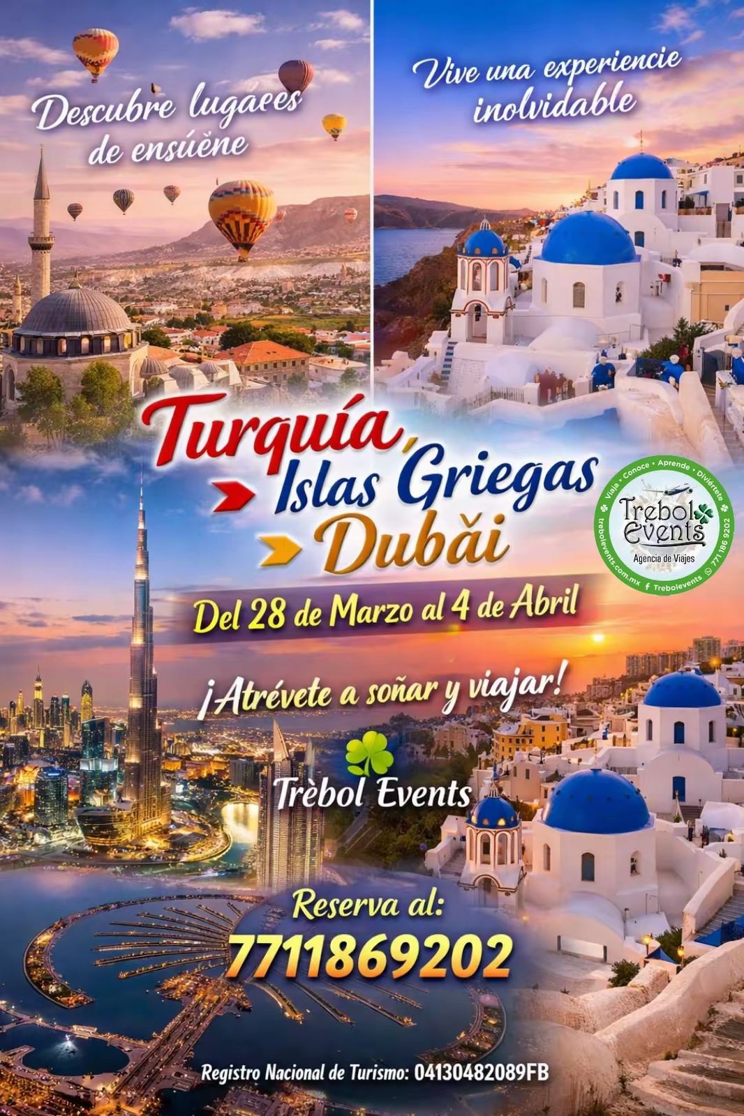 Somos una Empresa 100% mexicana fundada en la ciudad de Pachuca, Hidalgo bajo el nombre Trebol Events “Viaja, Conoce, Aprende y Diviértete”, teniendo un reconocido prestigio en el país y una amplia experiencia en el mercado turístico crea su marca trebolevents.com.mx para brindar a nuestros clientes la forma más fácil de reservar sus hoteles, tours, traslados y demás servicios para ofrecer a nuestros clientes una forma mas sencilla y segura de viajar al mejor precio en nuestras oficinas, online y por medio de WhatsApp 771 186 9202
